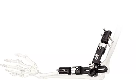 The primary objective of external fixation is Stabilization of the initial site of injury to improve the local soft tissue environment before definitive fixation is performed or to maintain reduction of the elbow joint.
